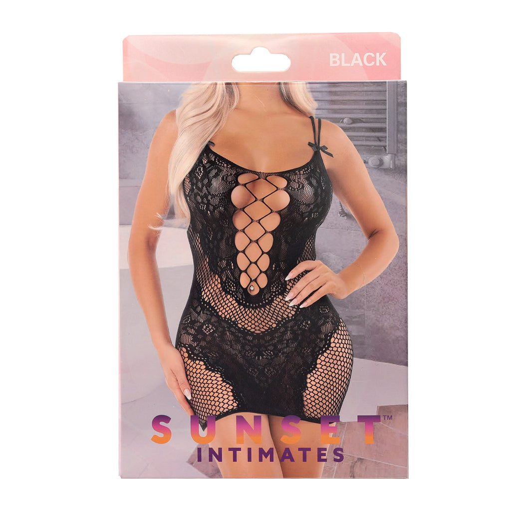 The SI Lace Mini Dress in black combines delicate lace with a playful babydoll silhouette, offering a flattering fit for a variety of body types. Crafted to enhance comfort and allure, this lingerie piece is ideal for intimate occasions where elegance meets seduction. Its one-size design ensures versatility without compromising style.